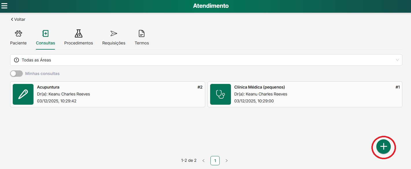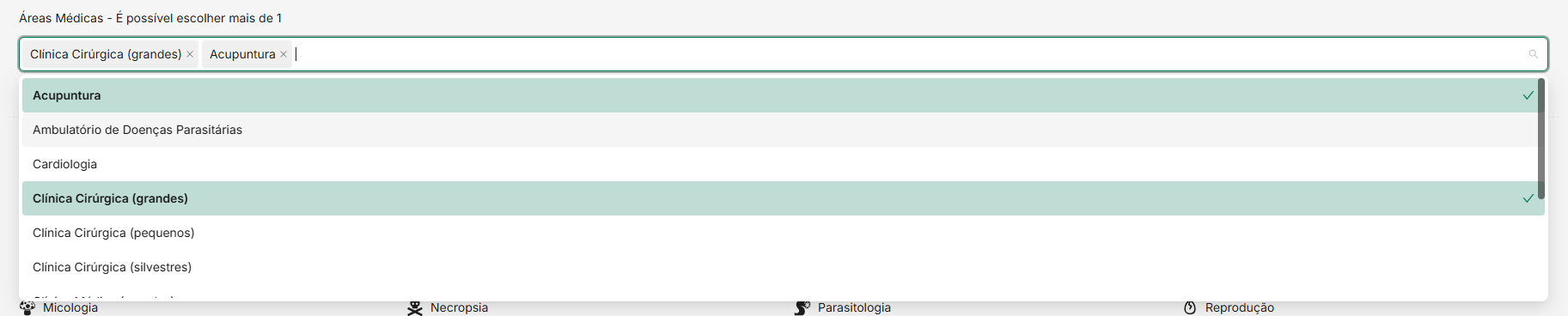 Preencha todos os campos obrigatórios, como Área, tipo de consulta, peso do animal e caso tenha sido uma consulta externa (fora do hospital), insira a distância.