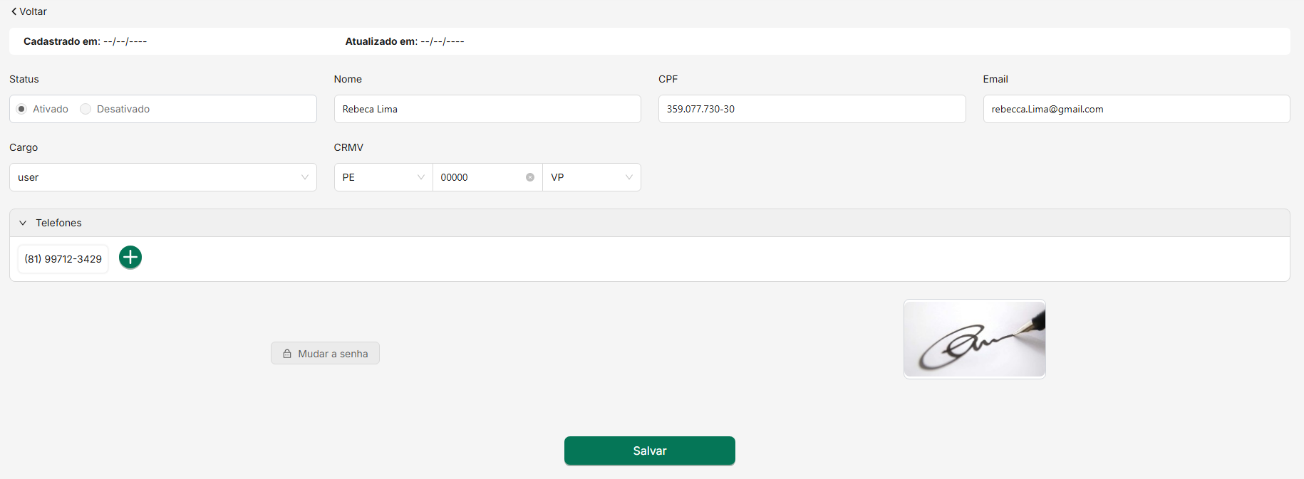 CRMV – é possível informar ZP (zootecnista) ou VP (veterinário).
